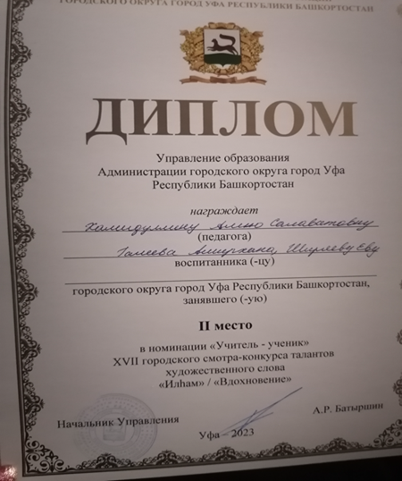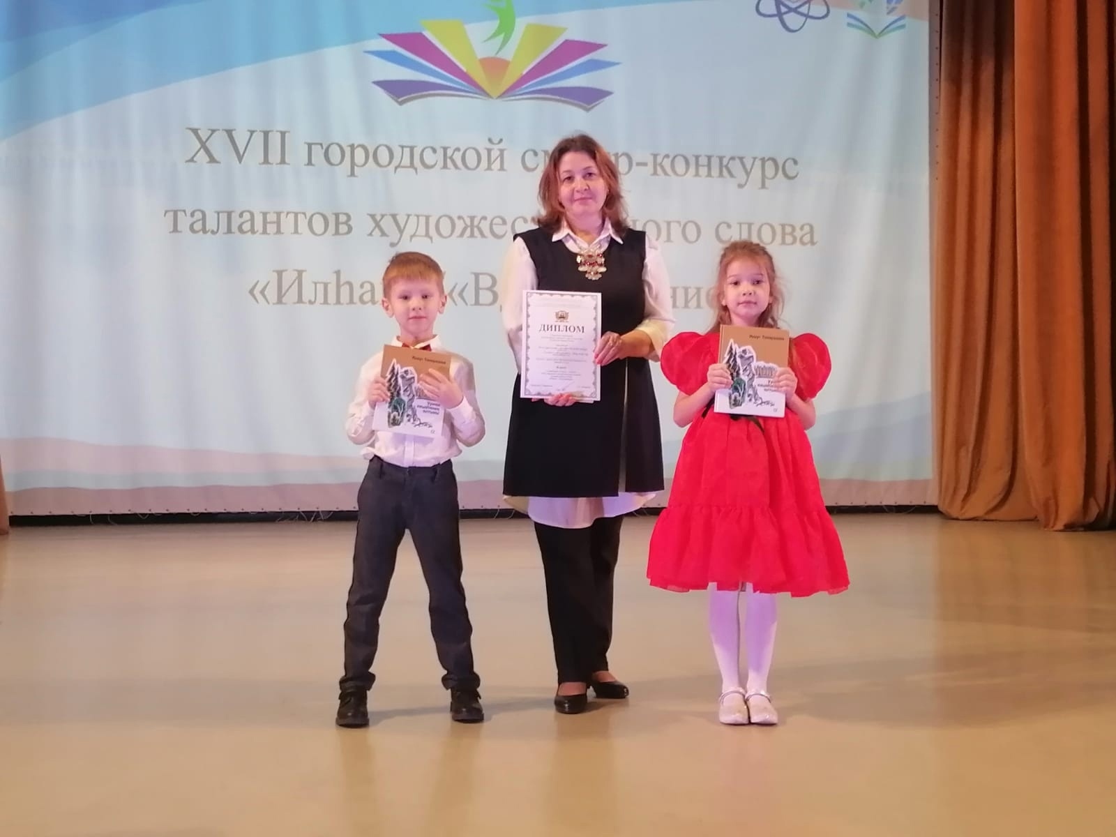 Состоялся городской смотр-конкурс талантов художественного слова «Вдохновение». Участница конкурса Хамидуллина А.С. совместно с воспитанниками ДОУ одержала победу в номинации «Учитель – ученик», 2 место.